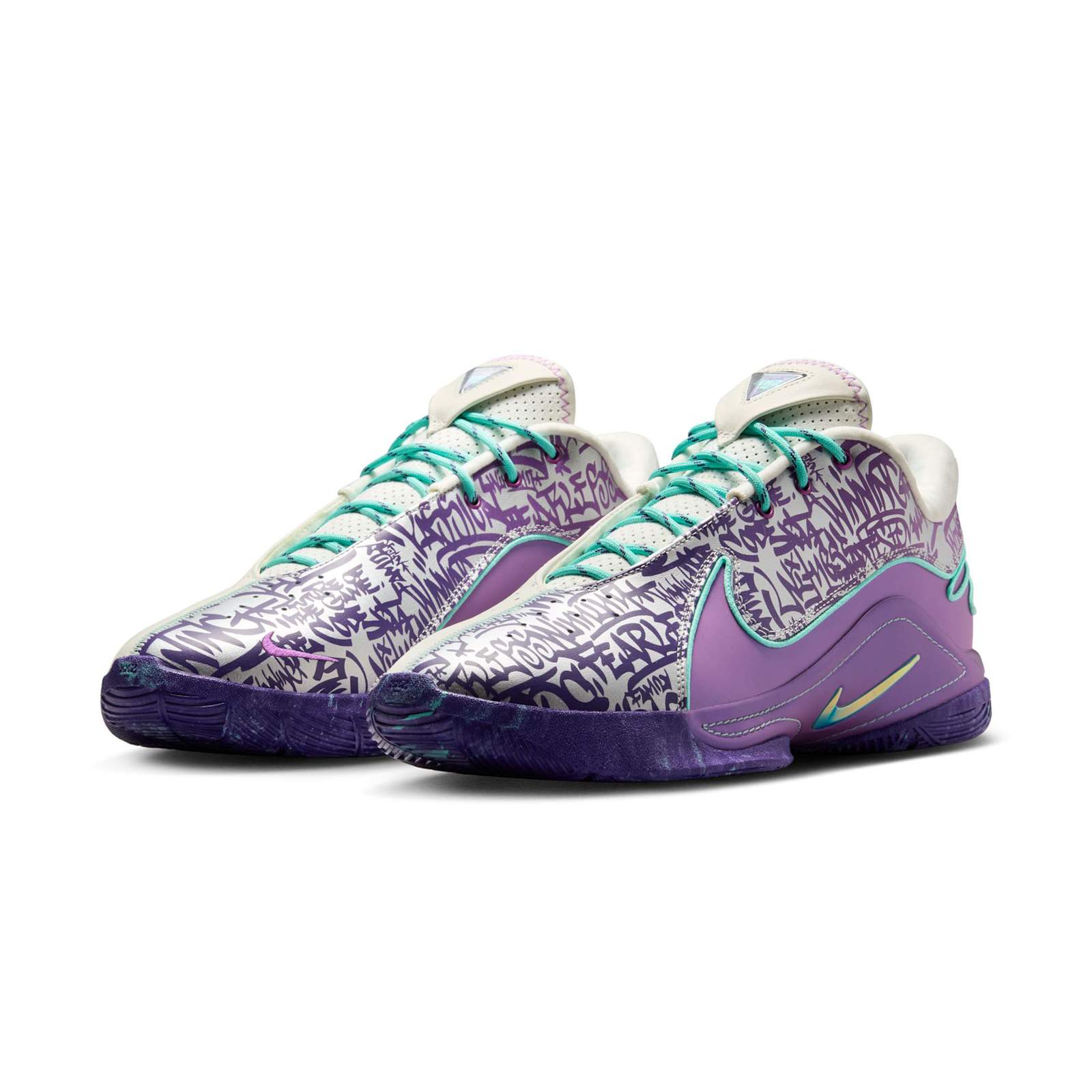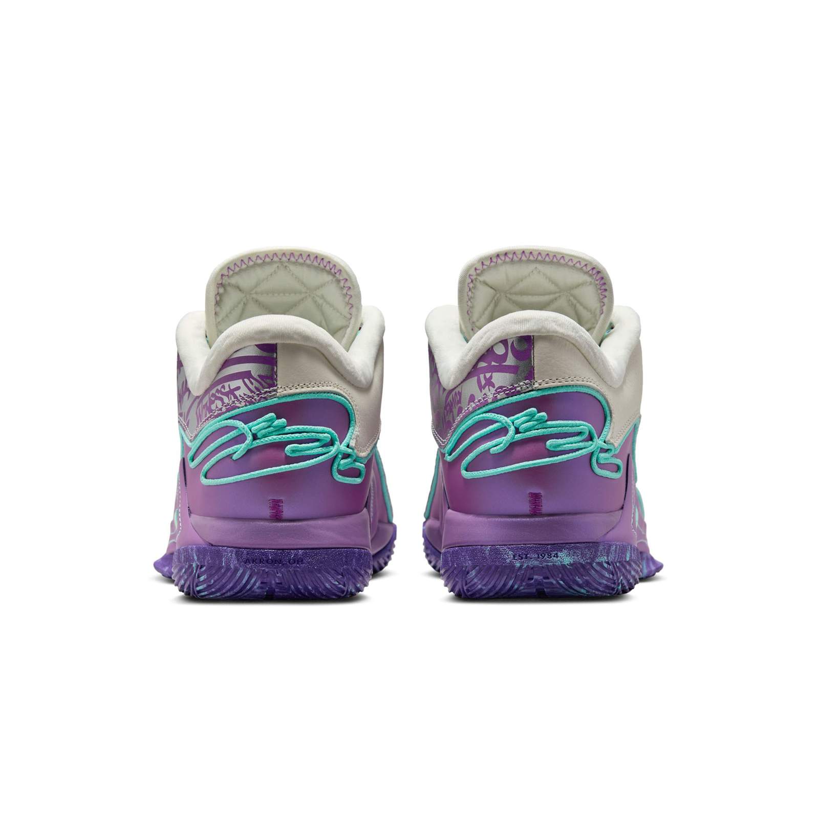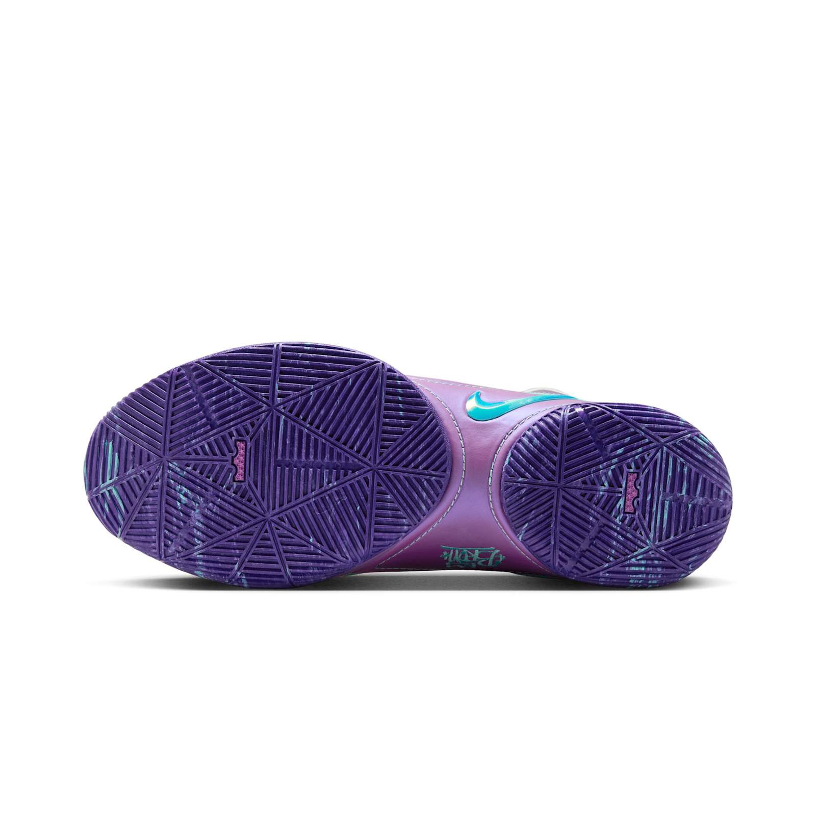 Этот дизайн напоминает сияние драгоценных камней: ярко-белый верх с неоновыми акцентами в сочетании с подошвой, светящейся в темноте в передней части стопы. Он отражает то, как Кинг принимает давление профессионального спортсмена и родителя, стремящегося к победе во всех аспектах своей жизни.