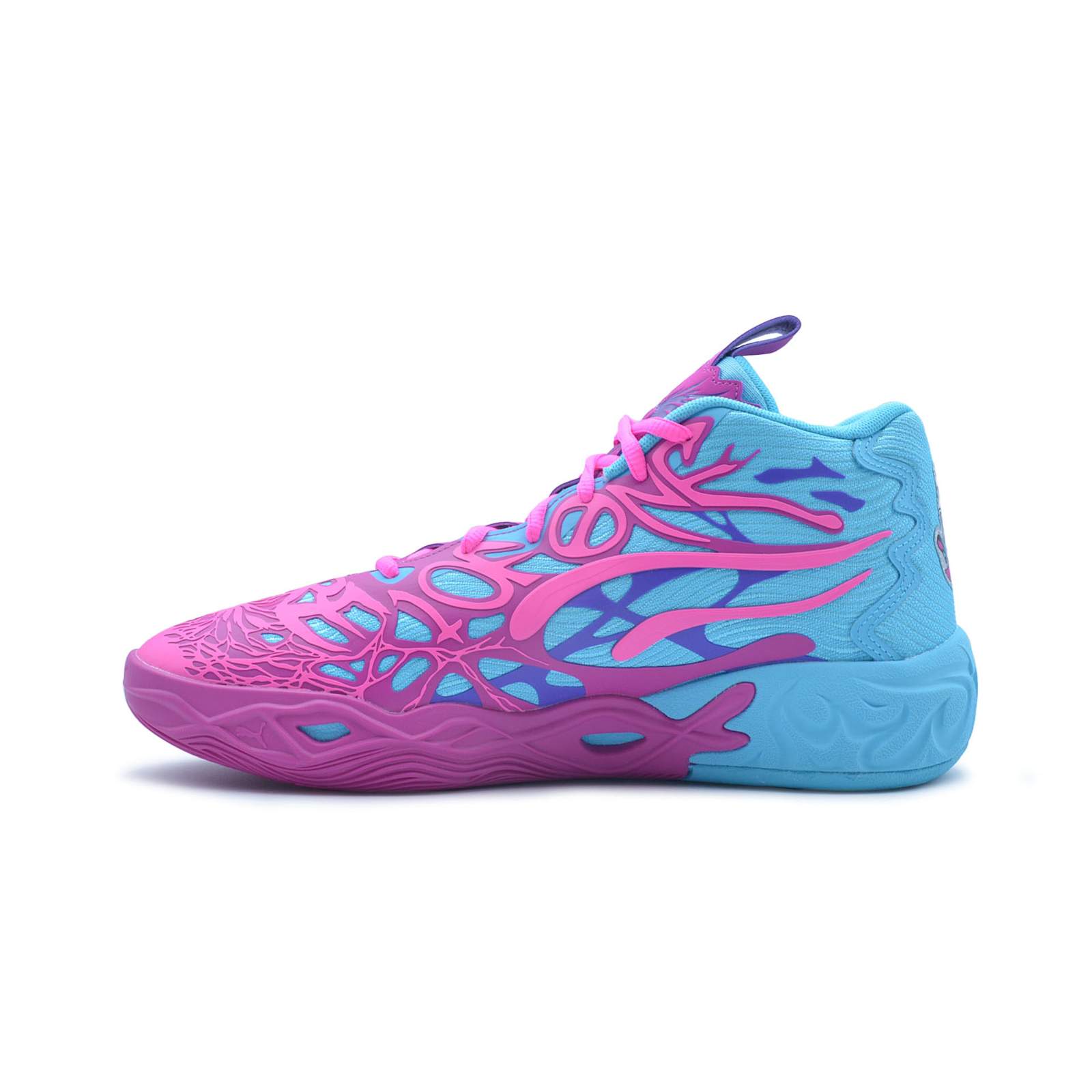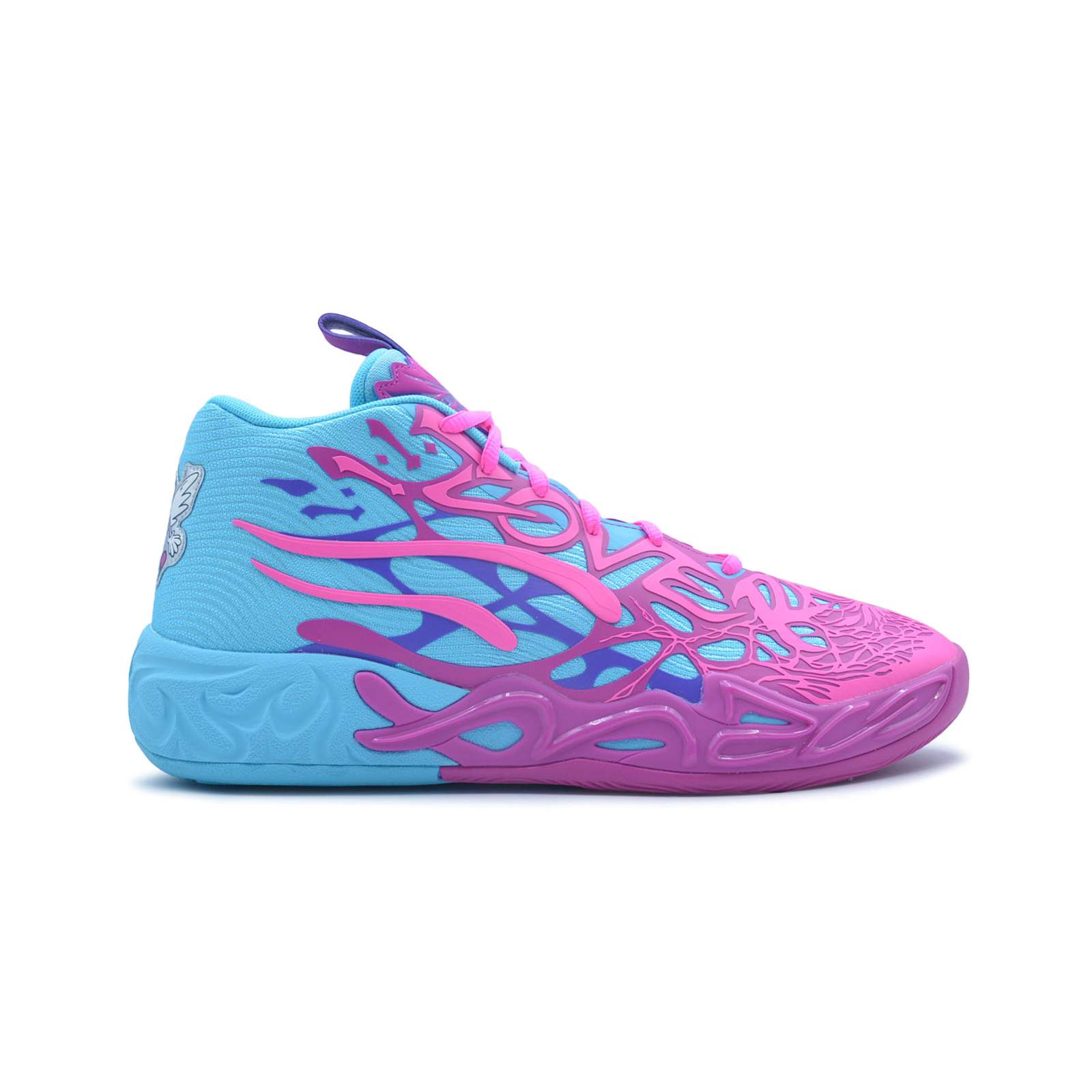 Добавьте измерения в свой стиль и свою игру с помощью последней фирменной обуви ЛаМело Болла - MB.04 Iridescent. Появившись в привлекающей внимание сине-фиолетовой расцветке, MB.04 окутаны щупальцами инопланетян, в которых спрятаны фразы Melo. Модель имеет поддерживающий двухслойный сетчатый верх и амортизацию NITROFOAM™ для уверенной игры на корте, а также радужный шершень на пятке.